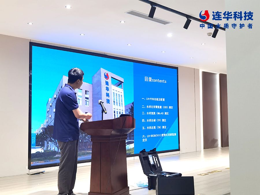 培訓(xùn)過(guò)程中,連華科技作為業(yè)內(nèi)知名的水質(zhì)檢測(cè)儀器及耗材生產(chǎn)廠家,對(duì)清瀾系列便攜式水質(zhì)測(cè)定儀LH-P700進(jìn)行了詳細(xì)的介紹和培訓(xùn)。上午的理論培訓(xùn)環(huán)節(jié),連華科技技術(shù)人員對(duì)水質(zhì)測(cè)定儀的原理、功能、常規(guī)污染指標(biāo)實(shí)驗(yàn)操作方法及注意事項(xiàng)進(jìn)行了全面系統(tǒng)的講解,讓參訓(xùn)人員對(duì)LH-P700這款水質(zhì)測(cè)定儀有了更加深入的了解。