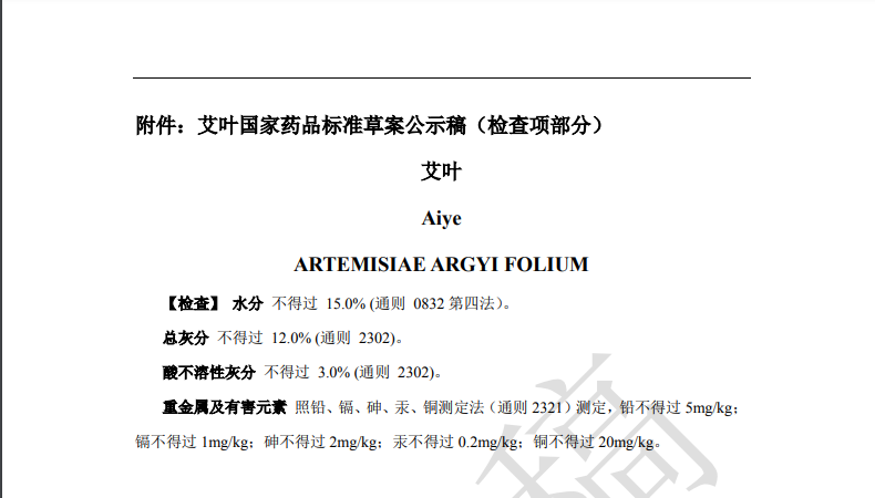 隨著《中藥法典》標(biāo)準(zhǔn)修訂進(jìn)程的推進(jìn),藥典委官網(wǎng)近期陸續(xù)發(fā)布多個(gè)標(biāo)準(zhǔn)公示,均與中藥重金屬及有害元素控制相關(guān)。其中,“關(guān)于黃連國(guó)家藥品標(biāo)準(zhǔn)草案的公示”、“關(guān)于艾葉國(guó)家藥品標(biāo)準(zhǔn)草案的公示”、“關(guān)于川芎國(guó)家藥品標(biāo)準(zhǔn)草案的公示”,對(duì)相關(guān)檢測(cè)項(xiàng)擬進(jìn)行修訂。公示期為30天。通知表示,若有異議,可及時(shí)在線反饋,并附相關(guān)說明、實(shí)驗(yàn)數(shù)據(jù)和聯(lián)系方式。