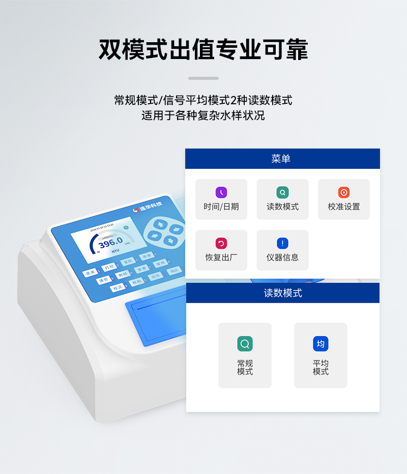 這款測定儀采用白光+紅外雙光束自動切換,測量范圍覆蓋0-4000NTU,無論是高濁度還是低濁度的水樣,都能輕松應(yīng)對。專業(yè)白光低量程模式確保測值精準(zhǔn),而紅外低量程模式則通過色度補(bǔ)償,讓有顏色的樣品測量更加準(zhǔn)確。內(nèi)置常規(guī)模式和信號平均模式,讓測量更加靈活,適應(yīng)不同樣品需求。
