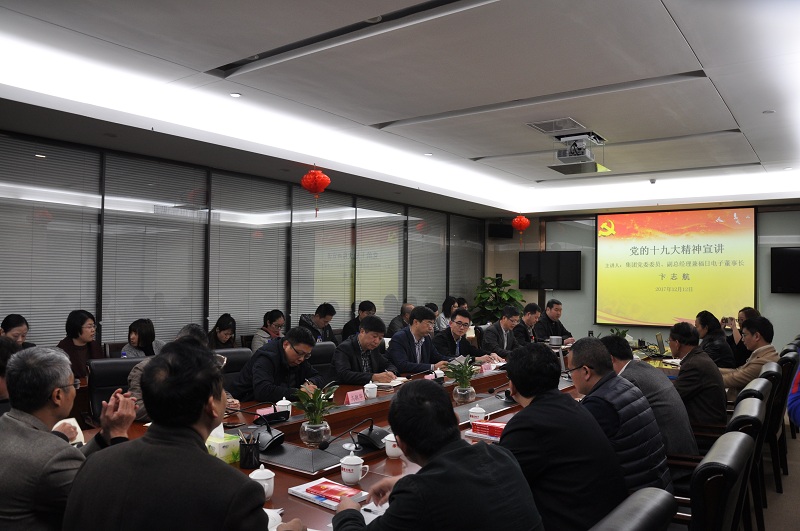 根據(jù)省電子信息集團(tuán)黨委統(tǒng)一安排,2017年12月12日下午,集團(tuán)黨委委員、副總經(jīng)理兼福日電子董事長卞志航到公司作黨的十九大精神宣講。福日電子黨委書記李震主持報告會,公司機(jī)關(guān)支部全體黨員、本部助理以上管理人員以及成員企業(yè)、事業(yè)部副總以上領(lǐng)導(dǎo)共計40余人參會。