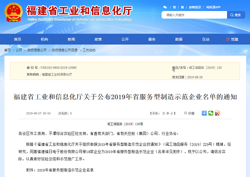 2019年8月26日,福建省工業(yè)和信息化廳公布了2019年省服務(wù)型制造示范企業(yè)名單,福建福日電子股份有限公司入選該名單。