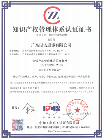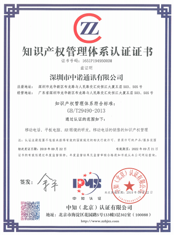 2019年9月,福日電子成員企業(yè)深圳市中諾通訊有限公司、廣東以諾通訊有限公司先后通過知識產(chǎn)權(quán)管理體系認證,進一步推進公司知識產(chǎn)權(quán)管理工作規(guī)范化、系統(tǒng)化、科學(xué)化,提升企業(yè)核心競爭力。