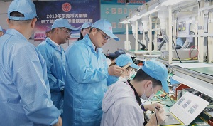 2019年10月23日,2019年?yáng)|莞市大朗鎮(zhèn)職工烙鐵手工焊接技能競(jìng)賽在福日電子二級(jí)控股子公司廣東以諾通訊有限公司舉行,87名參賽選手相互比拼,同臺(tái)競(jìng)技。