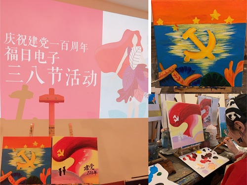 第111個“三八”國際婦女節(jié)如約而至,為慶祝建黨100周年,福日電子工會為每位女職工獻上了精美的花束,并組織了一場彩繪頌黨百年華誕活動。女職工們輕拾畫筆,用她們靈巧的雙手,把對黨、對祖國和對美好生活的祝福一筆一劃精心繪入自己作品中。