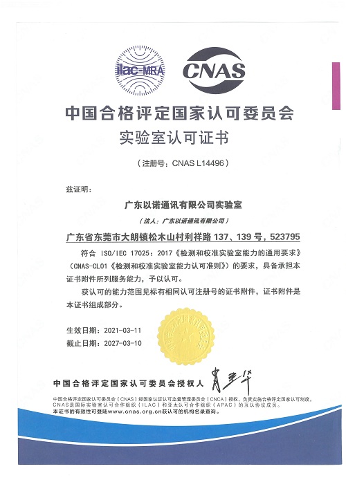 近日,福日電子二級控股子公司廣東以諾通訊有限公司實(shí)驗(yàn)室獲中國合格評定國家認(rèn)可委員會(CNAS)頒發(fā)的實(shí)驗(yàn)室認(rèn)可證書,標(biāo)志其已具備相應(yīng)的檢測技術(shù)能力和管理能力,提升了數(shù)據(jù)的可信度和含金量,避免重復(fù)性檢測,減少企業(yè)成本,提升公司整體形象和品牌價值。以諾通訊實(shí)驗(yàn)室將遵循“專業(yè)、嚴(yán)謹(jǐn)、誠信、創(chuàng)新”理念,積極拓展測試種類和試驗(yàn)項目,滿足各類客戶需求,持續(xù)提升公司實(shí)驗(yàn)室的專業(yè)水平。