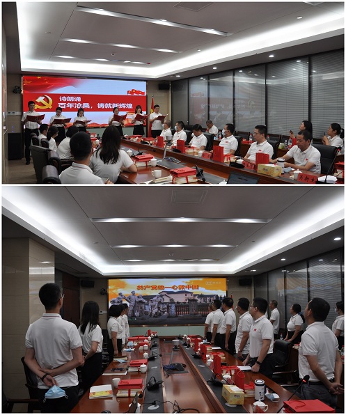 觀看大會直播后,本部黨總支隨即組織了“慶祝中國共產(chǎn)黨百年華誕”主題黨日活動。會上給總支全體黨員發(fā)放了慶祝建黨100周年紀念品和四史學習教育書籍,并由黨員代表現(xiàn)場表演詩朗誦《百年滄桑,鑄就新輝煌》,回顧黨領導人民團結奮進、砥礪前行的光輝歷程,感受祖國的發(fā)展成就?;顒釉凇稕]有共產(chǎn)黨就沒有新中國》激情飽滿的歌聲中結束,大家用歌聲唱出了對黨深深的祝福,抒發(fā)了對黨和祖國的熱愛之情,進一步堅定聽黨話、跟黨走的決心,凝心聚力推動企業(yè)高質(zhì)量發(fā)展。