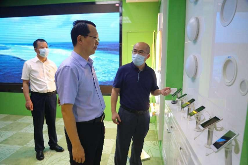 檢查前,鄭志鋒一行參觀了福日電子產(chǎn)品展示廳,詳細了解了福日電子的主營產(chǎn)品;駐足企業(yè)宣傳欄,詢問了福日電子企業(yè)文化建設和黨員先鋒示范崗作用發(fā)揮情況。