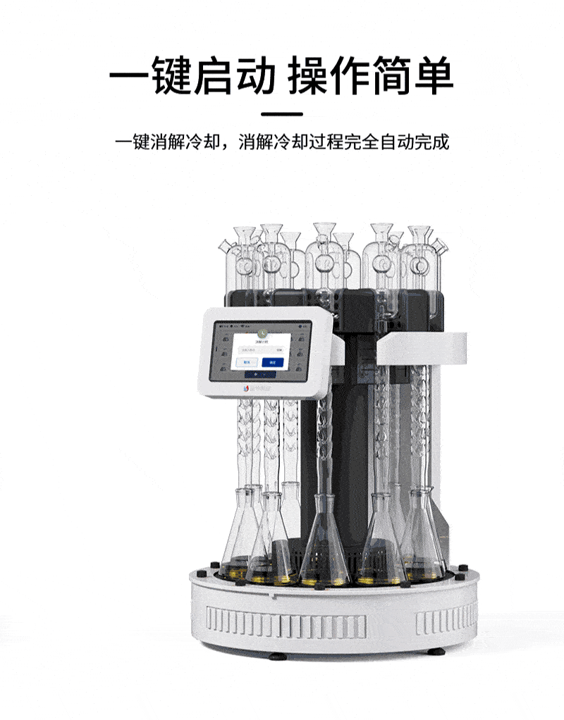 2、一鍵啟動(dòng):智能模式操作簡(jiǎn)單,只需一鍵啟動(dòng),各消解單元按照設(shè)定程序,自動(dòng)升溫、消解、回流、冷卻;