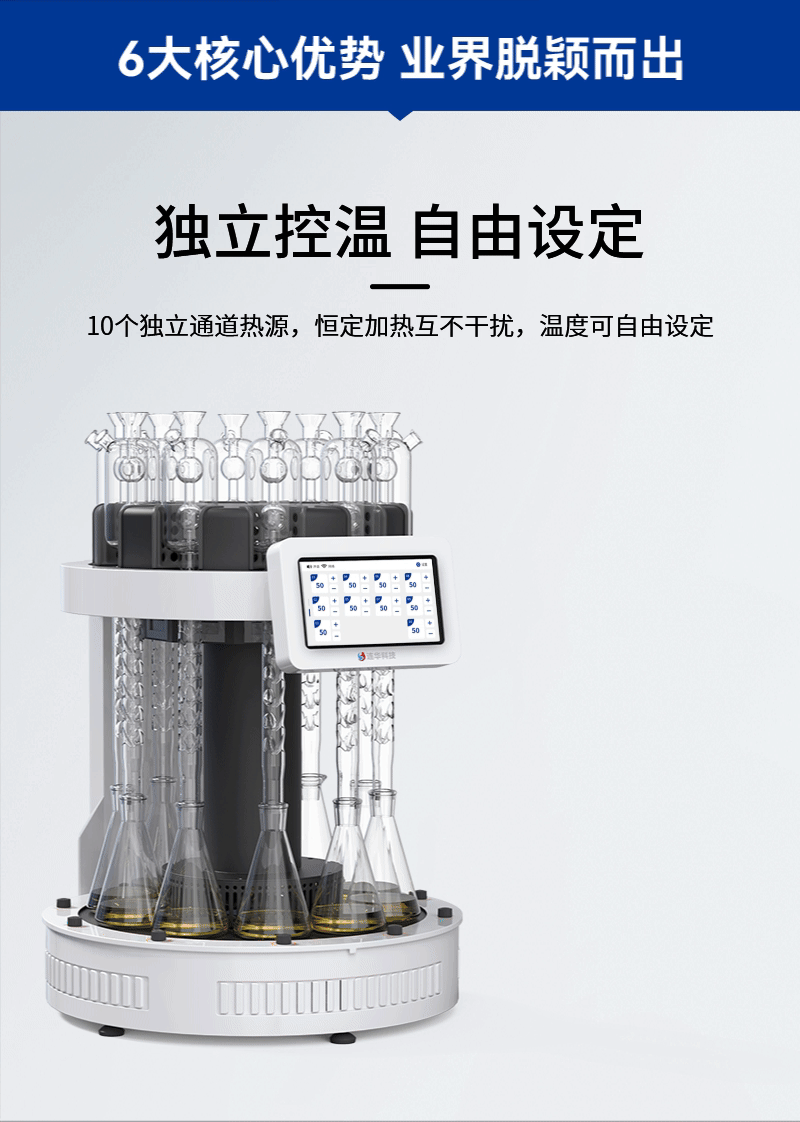 1、獨(dú)立控溫:10個(gè)獨(dú)立通道熱源,各通道恒定加熱,互不干擾,每個(gè)加熱單元可根據(jù)水樣特性自由設(shè)置消解溫度,保障樣品達(dá)到標(biāo)準(zhǔn)要求的微沸狀態(tài);