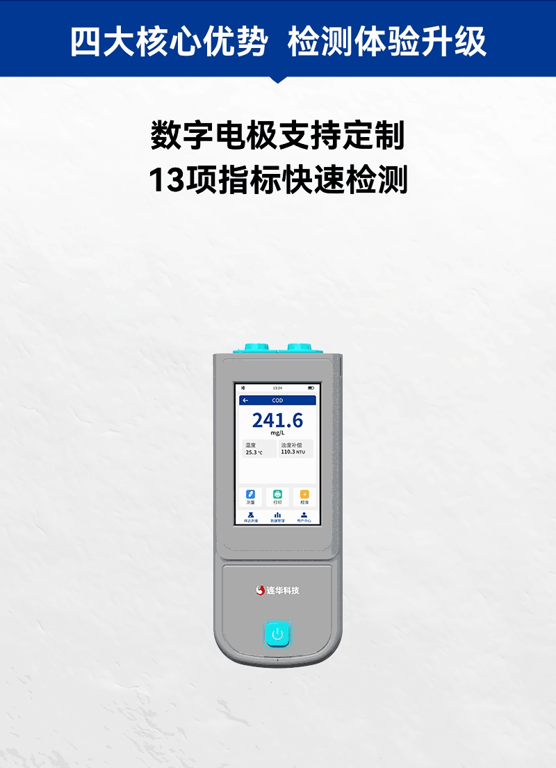 簡(jiǎn)要描述: LH-E200便攜式多參數(shù)水質(zhì)測(cè)定儀是一款電極法水質(zhì)分析儀器,采用全數(shù)字電極檢測(cè)pH、溶解氧、電導(dǎo)率、ORP、鹽度、TDS、濁度、COD、氨氮、葉綠素、藍(lán)綠藻、污泥濃度13個(gè)指標(biāo)。儀器搭載自研LHOS操作系統(tǒng),操作簡(jiǎn)單、性能穩(wěn)定、測(cè)量準(zhǔn)確、檢測(cè)范圍廣,內(nèi)置高容量充電鋰電池,便于用戶在野外、實(shí)驗(yàn)室隨時(shí)進(jìn)行水質(zhì)檢測(cè)工作。